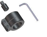 Optional small spindle disc and ratchet wrench enable pipe machining in difficult to access
