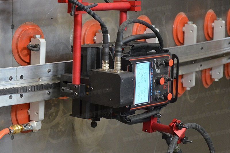 Het vacuümrailsysteem van Promotech zorgt voor stevige grip van de rail segmenten op materialen zoals roestvrijstaal, aluminium